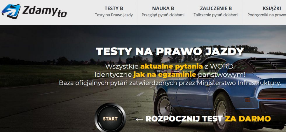 Idealne wsparcie do nauki na prawo jazdy oferuje serwis należący do spółki Zdamyto.pl Sp. z o. o., czyli ZdamyTo. Strona gwarantuje skuteczną naukę na test. Internauci mogą uporządkować wiedzę oraz zaznajomić się z wszystkimi przepisami prawa drogowego. To pozwoli przygotować się świetnie do egzaminu państwowego. W ZdamyTo można znaleźć kompletne zestawy materiałów dla kandydatów, niezależnie od tego, na jaką kategorię zdają. ZdamyTo jako jeden z twórców ministerialnej bazy pytań na testy na prawo jazdy, co daje kandydatom pewność, że będą mogli zdać egzamin. Testy zawierają wszystkie bieżące pytania z WORD. Są one tożsame z tymi z egzaminu państwowego. Baza oficjalnych pytań została zatwierdzana przez Ministerstwo Infrastruktury.